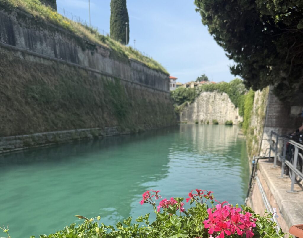 Ich war vor der Menschenmenge gewarnt worden – man sprach von Pisa-gleichen Zuständen – aber dass es wirklich überhaupt keinen freien Parkplatz gab, hatte ich dann doch nicht erwartet. Also drehte ich um, ohne auch nur etwas gesehen zu haben, und habe lediglich ein “aus der Ferne”-Foto von Sirmione. Mein ausdrücklicher Tipp: komm entweder früh morgens, spät am Tag, oder mit dem Fahrrad oder Motorroller. Alternativ kannst du ein Ticket für das Hop-on-Hop-off-Boot von Navigarda kaufen, das dich zu verschiedenen Orten am See bringt.