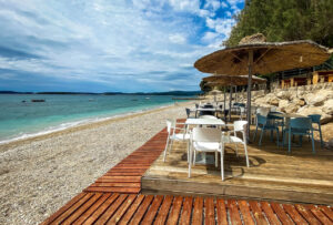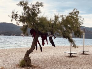 Mehrere Surfschulen bieten vor Ort Ausrüstung und Kurse an. Doch auch wer nicht surft, fühlt sich in Viganj wohl: kleine Strände, chillige Bars und entspannte Stimmung machen das Dorf auch für Familien und Ruhesuchende attraktiv. Für Frühstück oder Eis geht man am besten zu Croccantino, das wie in Orebić ebenfalls eine Filiale hat. Ein leichtes Mittagessen direkt am Wasser gibt’s bei Cringito – sehr zu empfehlen.